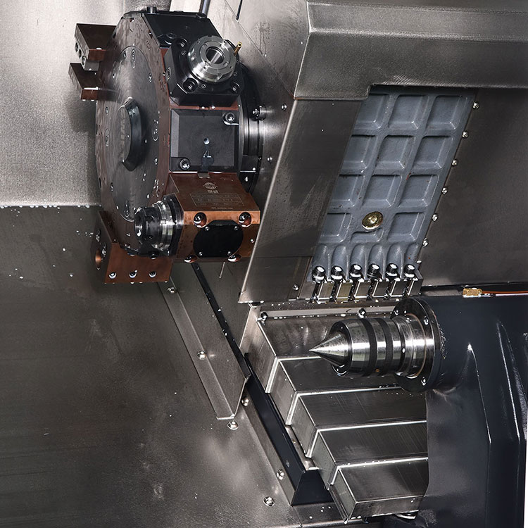 ★選用動力刀塔及C軸控制使ZS52T系列成為車系復合中心,可將一-工件在同一車床內完成車、銑、鉆及攻牙等加工。避免因為工作在機器間移動所產生的誤差,并既省加工時間及人力。
