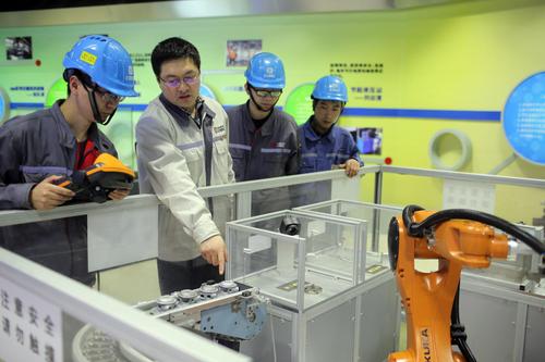 劉云清在機(jī)器人智能模擬線做培訓(xùn) 楊登峰攝