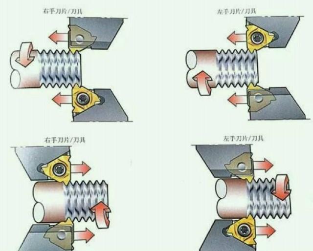關(guān)于左右旋螺紋的加工方法如下如所示,最簡單的一把刀就是從右往左為右旋,反之左旋!