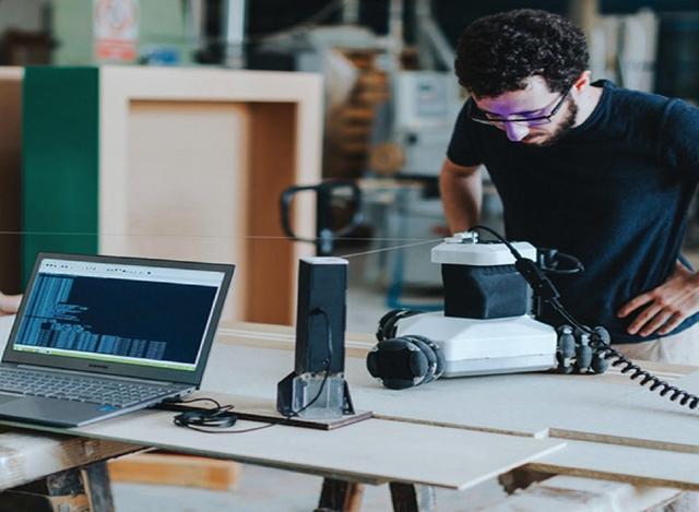 工作時(shí),Goliath 智能的萬向三輪設(shè)計(jì),確保兩個(gè)輪子始終與面板接觸,所以Goliath 的運(yùn)動(dòng)不受已經(jīng)切割的凹槽或輪廓的影響。整個(gè)操作過程只需通過Wi-Fi加載好相應(yīng)的CAD文件,設(shè)置參數(shù)后,其余的事情由 Goliath 自動(dòng)完成即可。作業(yè)過程中產(chǎn)生的灰塵和碎片也不會(huì)不影響到機(jī)器人的精度。